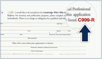 To begin the application process, please enter the application code from the mailing you received in the space provided below. The application code can be found in the upper right hand corner of the reply card or in the bottom left hand corner of the nomination letter that you received from Cambridge Who's Who.